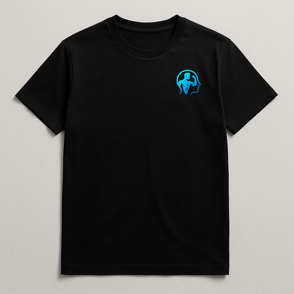 Elevate your style and performance with our premium 100% cotton T-shirt, featuring the exclusive glowing Mind & Muscle Logo on the left chest.